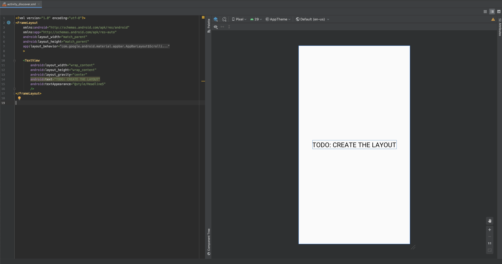 Ici ce sera donc R.layout.activity_discoverCTRL+N / CMD + O