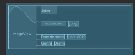 La vue sera composée d'une CardView parente dans laquelle se trouvera un premier LinearLayout horizontal qui contiendra le poster et un second LinearLayout vertical qui contiendra les autres vues.
