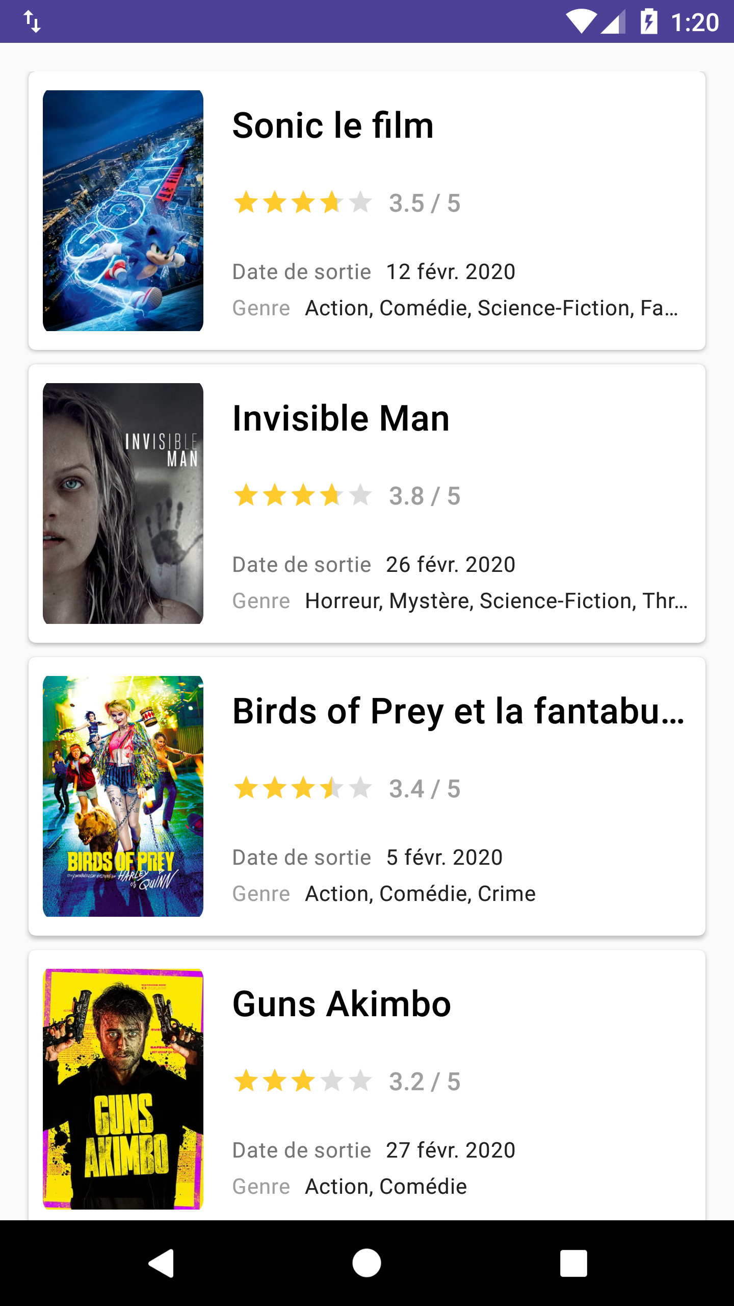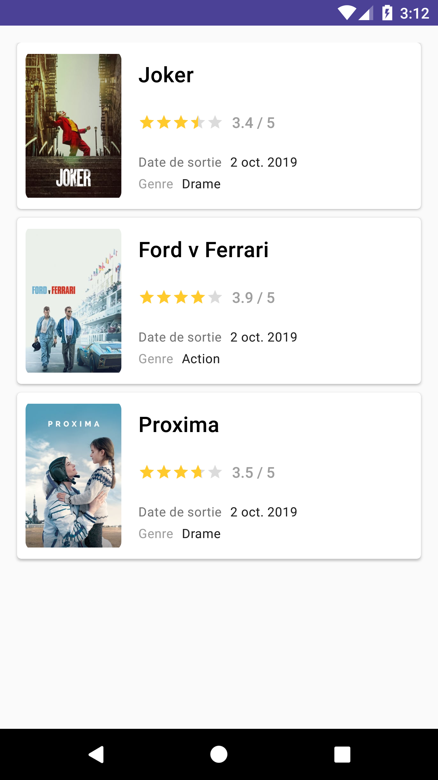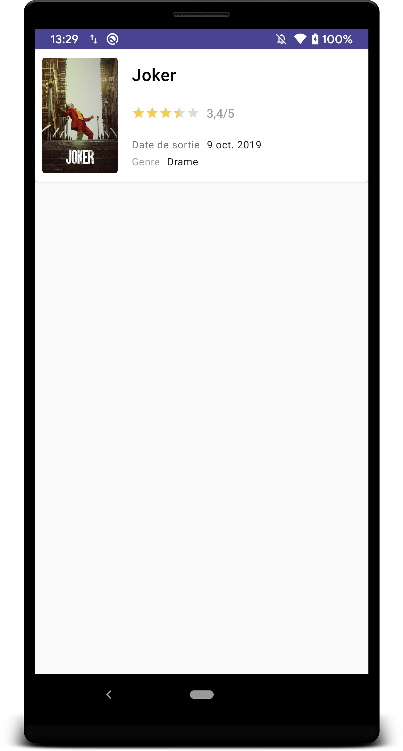 git stash -a && git checkout step3.0Pour l'instant, le layout qu'on a mis en place ne supporte que l'affichage d'une seule carte de film.